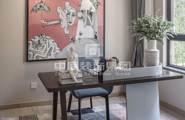 書房的書桌最好靠近窗邊。為避免閱讀造成眼睛疲勞,可考慮采用色度較接近柔和晨光的、不閃爍穩(wěn)定的燈具,以減輕視覺(jué)負(fù)擔(dān)。