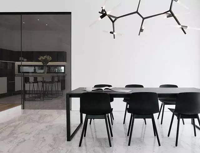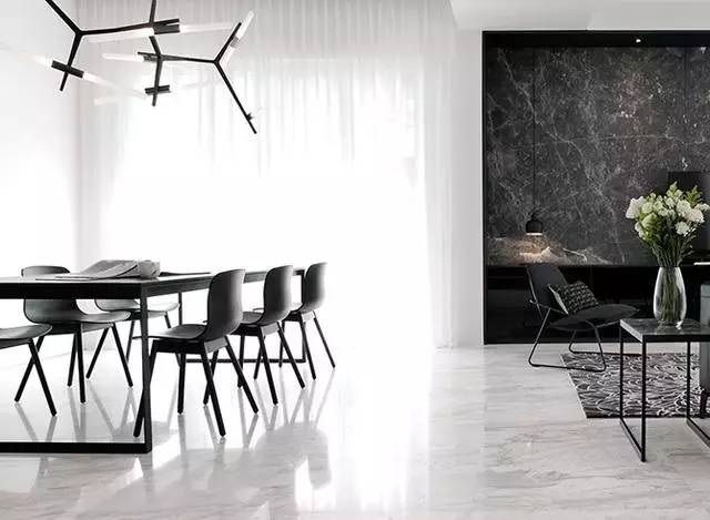 ▲淺灰白色的大理石光滑而有質(zhì)感,加之天花板也被刷白,整個空間看起來清爽極了。