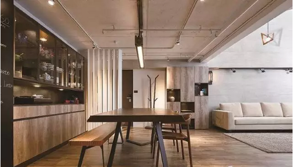 設(shè)計(jì)者將餐廳經(jīng)過(guò)重新配置,拉大了使用尺度,同時(shí)也能滿足男屋主愛(ài)下廚,能經(jīng)常邀請(qǐng)三五好友到家中做客、享受料理的需求。除了大尺度的餐廳、餐桌之外,同時(shí)也規(guī)劃了一座大面的餐具展示柜,一改過(guò)去將杯盤(pán)拾起的概念,而是將這些具鮮明色彩、特殊造型的杯盤(pán)一一展現(xiàn)出來(lái),不僅輕松完成收納,家的生活感表露無(wú)遺。