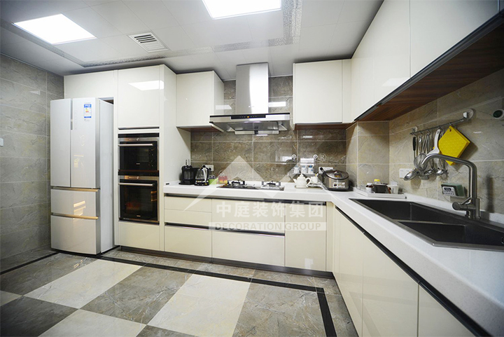 ▲在廚房裝修的時候最好選擇一些好拆卸好清洗的頂板,中國人做菜最喜歡的就是煎炒烹炸,整體煙熏火燎,就算有抽油煙機(jī),等時間長了,也會給頂面沾上一些油污,這樣也不用擔(dān)心臟亂差的問題。