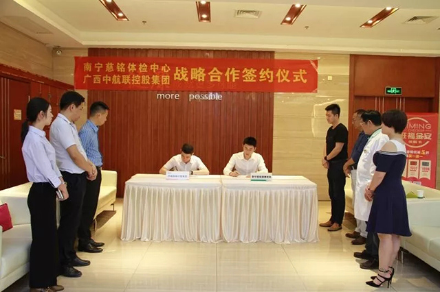 4月13日下午,中航聯(lián)控股集團(tuán)公司與南寧慈銘體檢在南寧慈銘體檢中心,就雙方達(dá)成戰(zhàn)略合作關(guān)系進(jìn)行正式簽約,并將慈銘體檢中心列為集團(tuán)指定體檢機構(gòu)。
