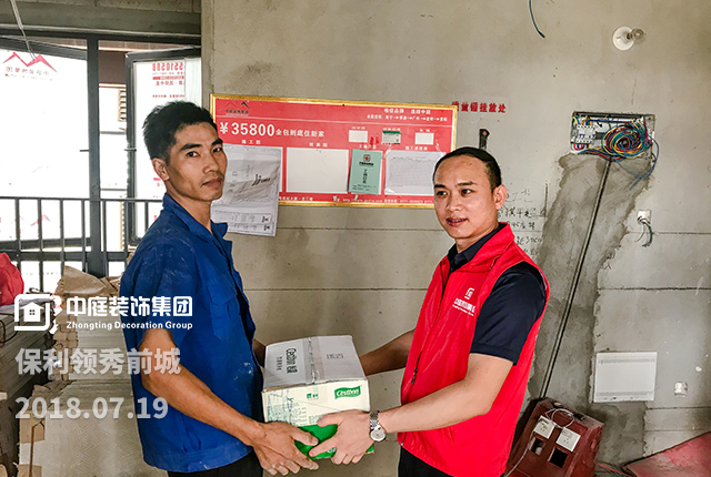 裝修工人群體是企業(yè)的直接生產(chǎn)力,也是集團蓬勃發(fā)展的核心競爭力,所以每次巡檢工地,都會給予尊敬的一線工人們一些關(guān)懷和回報。工程質(zhì)量管理中心吳總和工程部經(jīng)理分別為工人們送上解暑飲品。