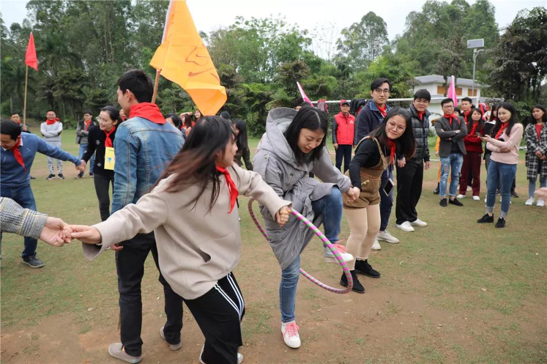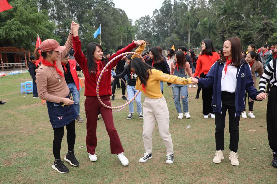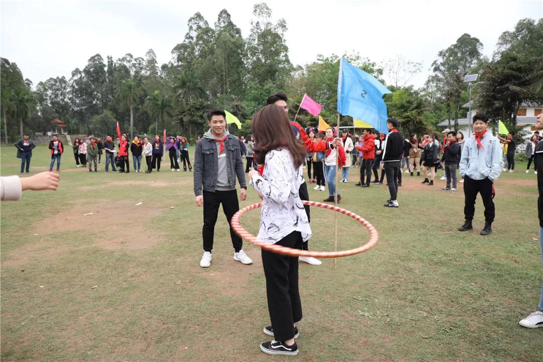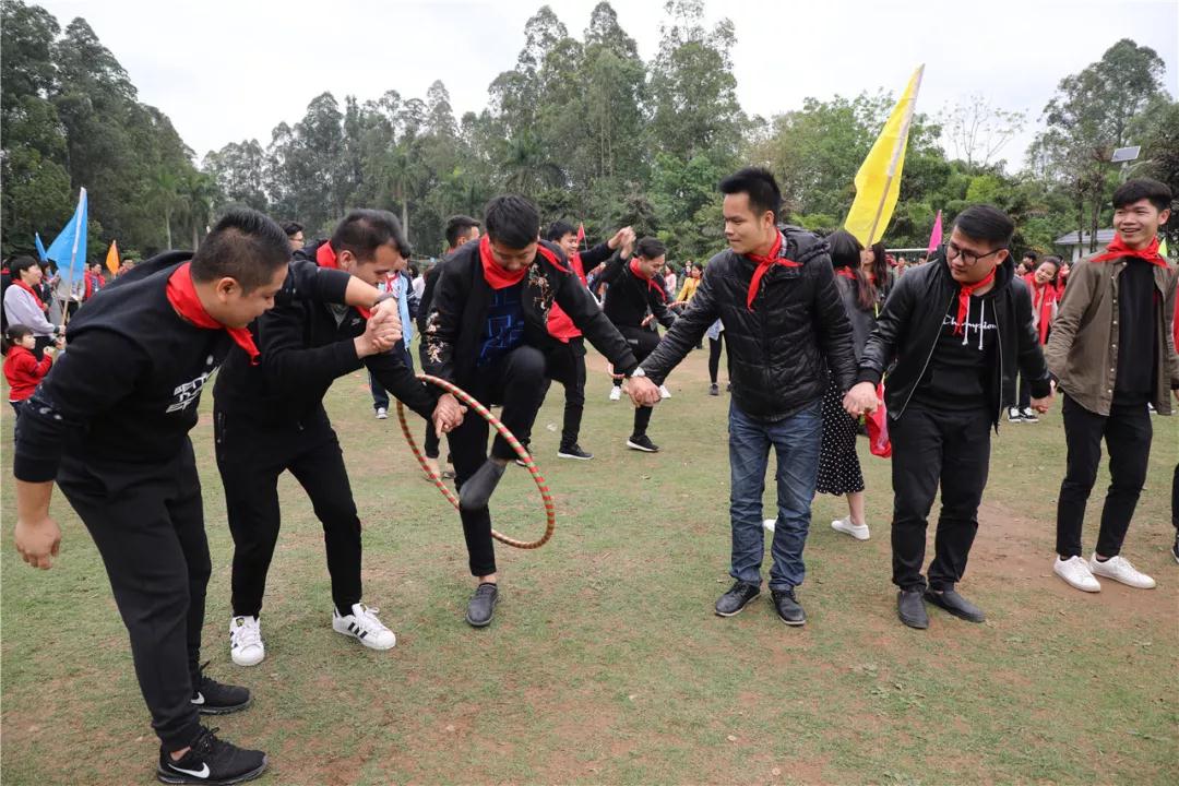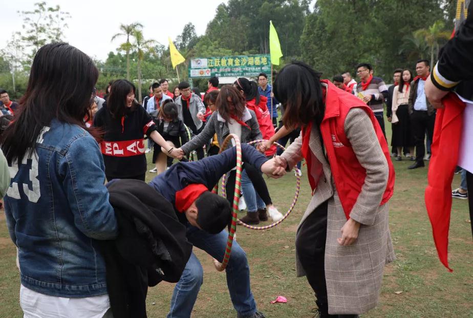 游戲規(guī)則:小組人員手牽手,從第一個(gè)人傳遞拉呼啦圈至最后一人,中途隊(duì)員不能放開手或者用手去接觸呼啦圈,否側(cè)重來,完成任務(wù)團(tuán)隊(duì)。