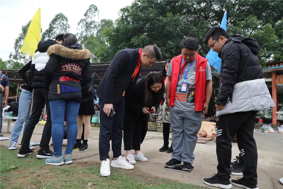 游戲規(guī)則:每隊(duì)只有1分鐘商量,以442斤為基數(shù),湊人數(shù)稱重量,實(shí)際斤數(shù)與442斤基數(shù)越接近的團(tuán)隊(duì)可以優(yōu)先選擇燒烤食材(燒烤食材限份數(shù))。