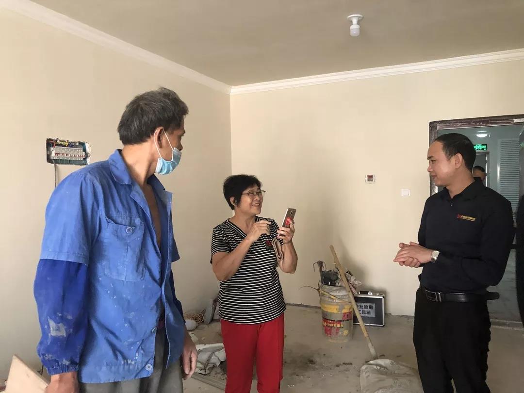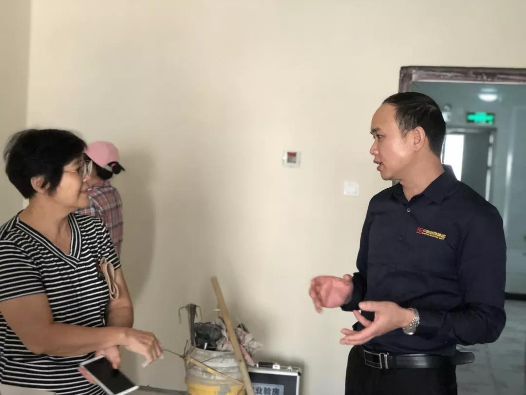 ▲吳總現(xiàn)場(chǎng)和業(yè)主了解裝修滿意度,業(yè)主表示非常滿意