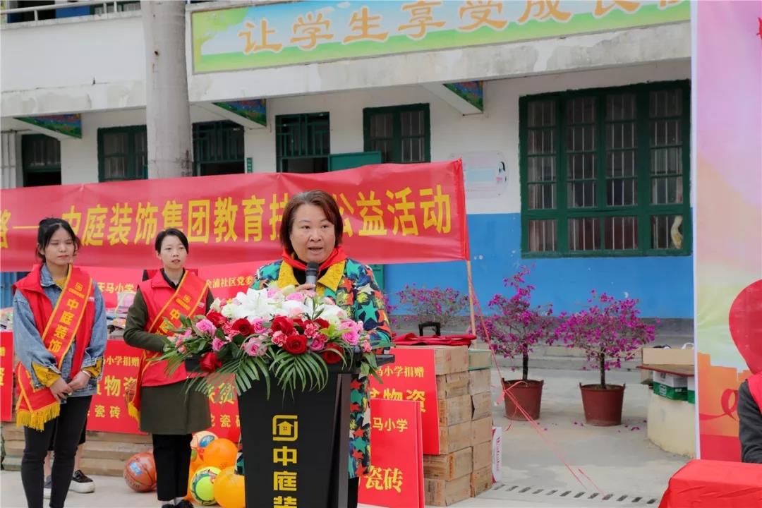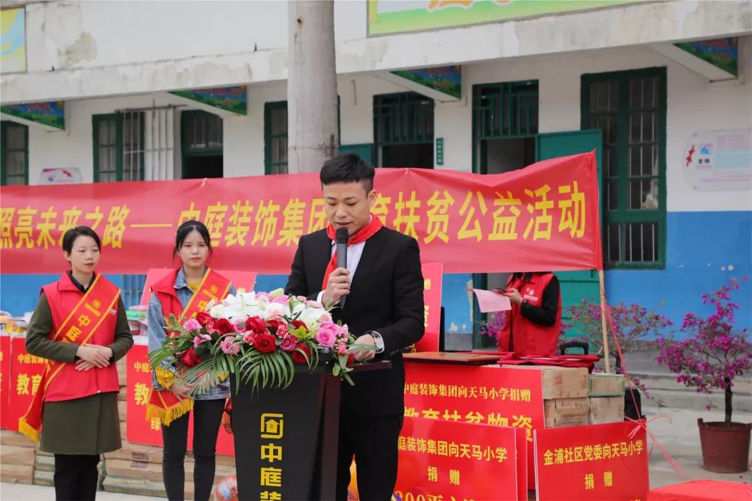 許書(shū)記表示,感謝中庭裝飾集團(tuán)組織的教育扶貧公益活動(dòng)。讓我們相聚在這里,深入貫徹習(xí)近平總書(shū)記“扶貧先扶志,扶貧必扶智”的重要指示精神,為天馬小學(xué)教育扶貧貢獻(xiàn)一份力量。