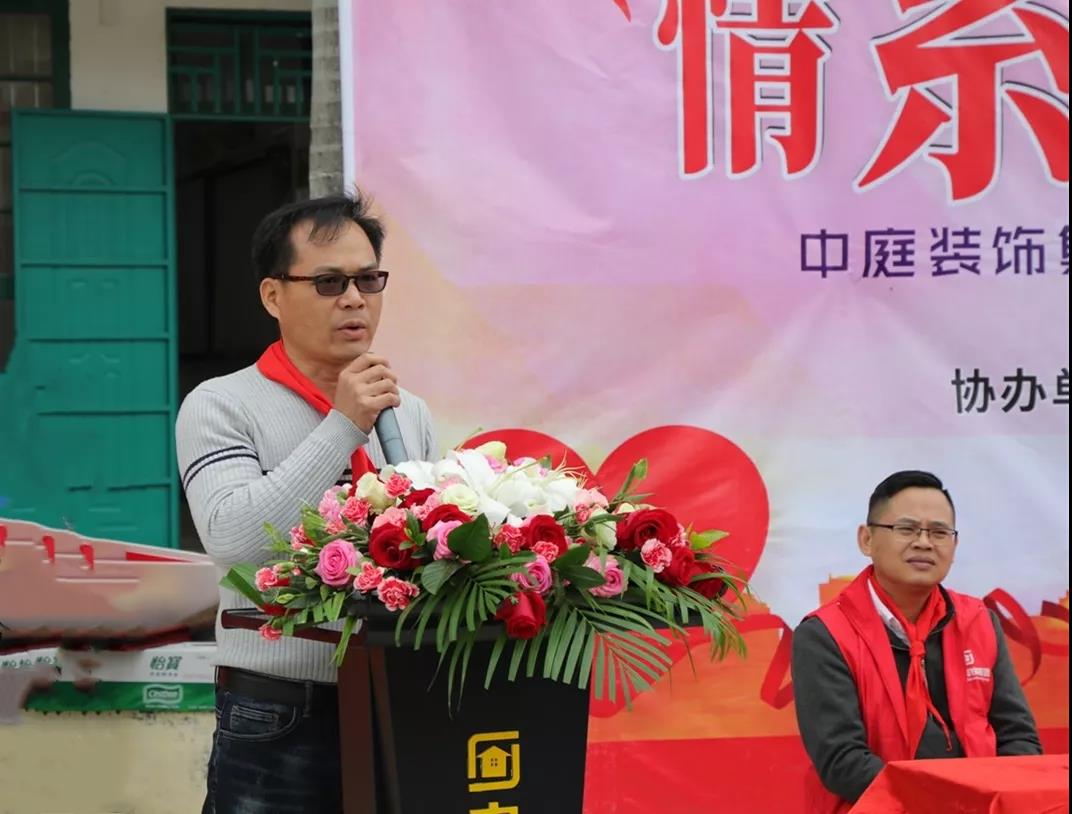 羅波鎮(zhèn)副鎮(zhèn)長(zhǎng)吳潔代表鎮(zhèn)黨委、鎮(zhèn)政府向中庭裝飾集團(tuán)組織的愛(ài)心助力團(tuán)表示了由衷的感謝。同時(shí)表示,希望通過(guò)這次的活動(dòng)能帶動(dòng)更多像中庭裝飾集團(tuán)這樣勇于承擔(dān)社會(huì)責(zé)任、有擔(dān)當(dāng)?shù)膼?ài)心企業(yè)、愛(ài)心人士投身到愛(ài)心公益中。
