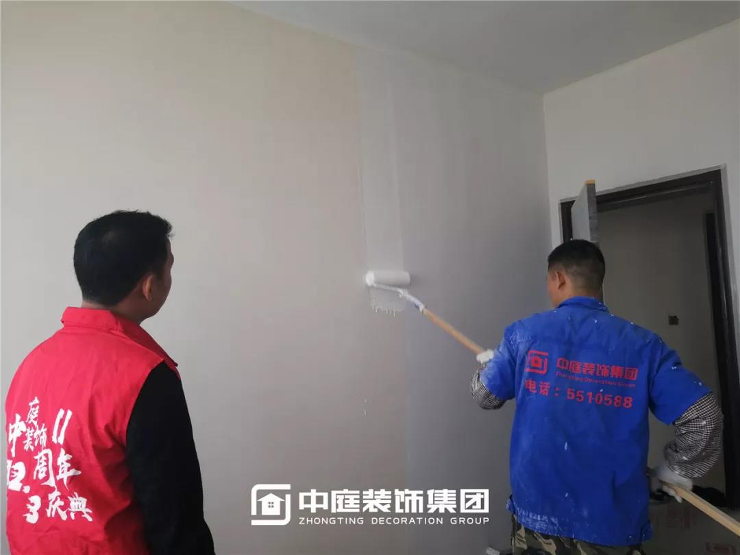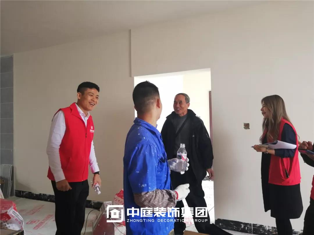 丁胡總裁與業(yè)主、施工師傅交流膩子施工情況;交流過程中明顯可以看出師傅和業(yè)主朋友的關(guān)系非常融洽,巡檢現(xiàn)場其樂融融。