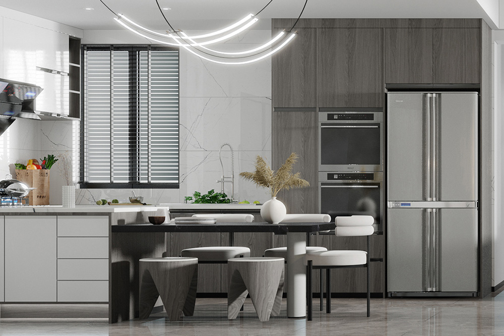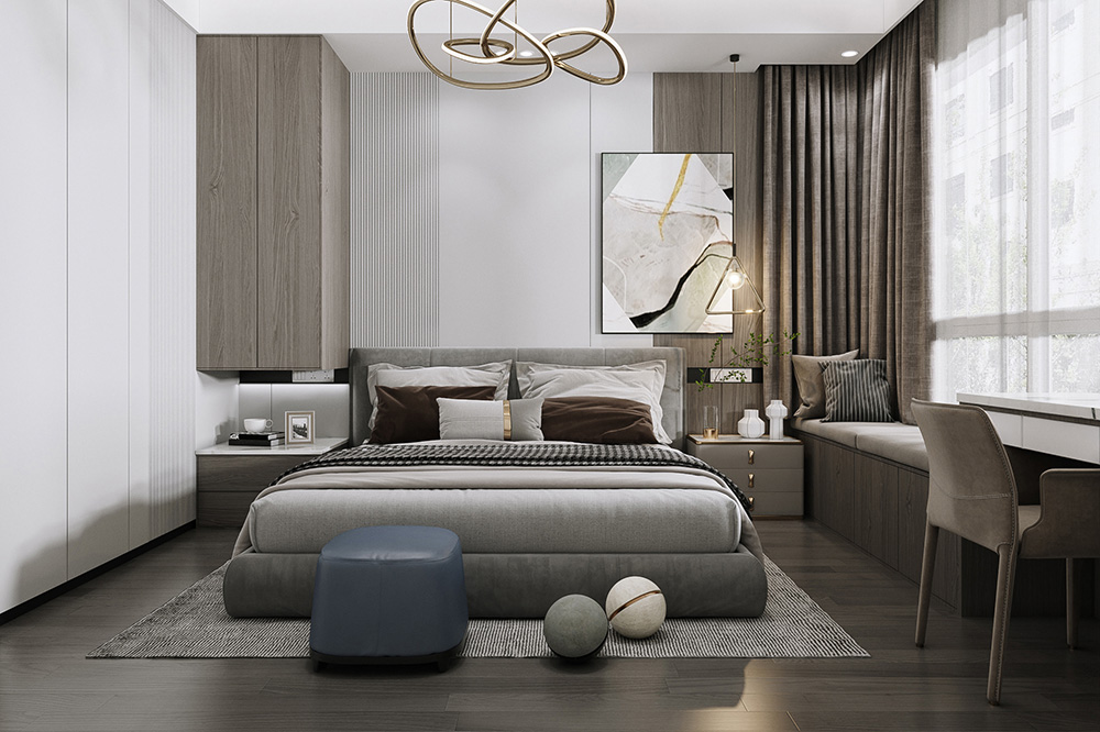 江灣山語城126m2案例,本方案以現(xiàn)代輕奢風(fēng)格為主,輕是一種優(yōu)雅的態(tài)度,低調(diào)舒適,但不損害高貴優(yōu)雅;奢侈是一種既不讓人有壓力又追求品質(zhì)和精致生活的狀態(tài)。整體色調(diào)以灰白為主,黑色為點(diǎn)點(diǎn)綴色,冷端搭配無疑是最好的搭配方式?,F(xiàn)代輕奢家具的造型一般以矩形為基本框架,板件的邊角又巧妙的運(yùn)用了橢圓型處理,使用大量精巧優(yōu)雅的弧線設(shè)計(jì),富有韻律之美,溫文爾雅、卓越超群。頗具前瞻性、不拘一格的設(shè)計(jì)理念,迎合新貴一族的審美品位。