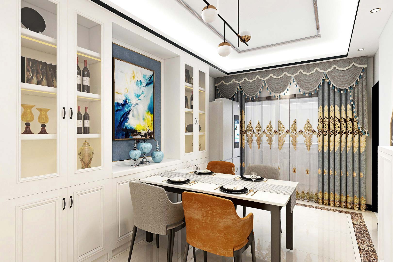 此案例戶型為4房2廳2衛(wèi),總面積120㎡,屬于現(xiàn)代輕奢風(fēng)格,整體以灰白色調(diào)為主,以明艷色彩點綴為輔,打造了一個簡約大氣的舒適居住空間。此外,空間以金屬元素作為點綴,用色彩的純度傳遞細膩的質(zhì)感。造型簡潔,線條流暢的家具組合搭配,營造出穩(wěn)定、協(xié)調(diào)、溫馨的空間感受,滿足現(xiàn)代家庭的輕奢需求。設(shè)計師用一些精致裝飾的小物品來彰顯主人自在有格調(diào)生活方式,凸顯其潮流精神與靈魂修養(yǎng)。