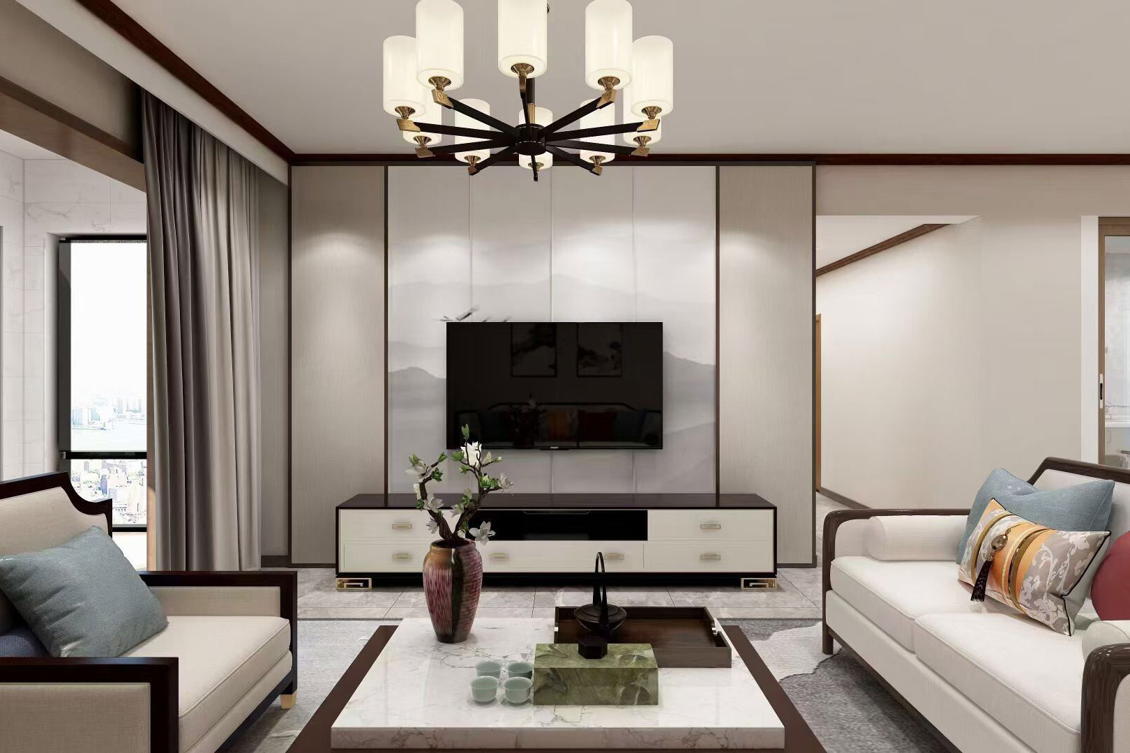 施工面積:120-150㎡| 設(shè)計(jì)風(fēng)格:新中式風(fēng)格