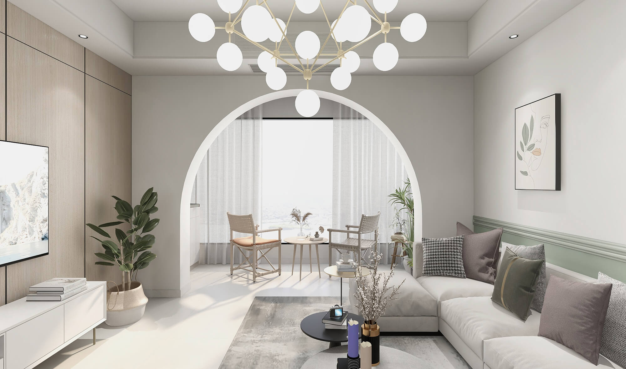 本案戶型為:3房2廳2衛(wèi),總面積110㎡。此案例以現(xiàn)代簡約為主線,設(shè)計(jì)師遵循自然流動(dòng)的空間通透感,營造出一個(gè)藝術(shù)純粹靈動(dòng)的空間,將現(xiàn)代的生活方式體現(xiàn)的淋漓盡致。
