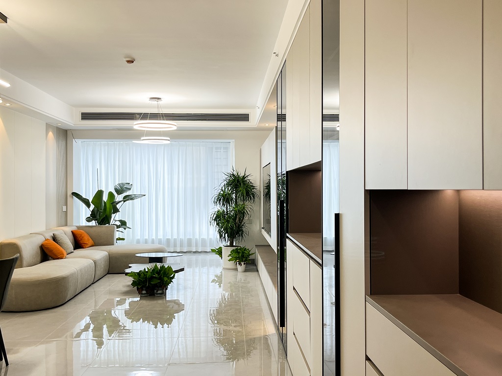 瀏覽量:599原始戶型的結(jié)構(gòu)非常的方正,通過拆除客廳與陽(yáng)臺(tái)之間的墻體,讓客廳的空間變得更加的開闊通透。在玄關(guān)、客廳臥室等地方增加柜體,增大了儲(chǔ)物空間。