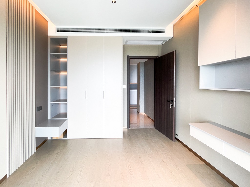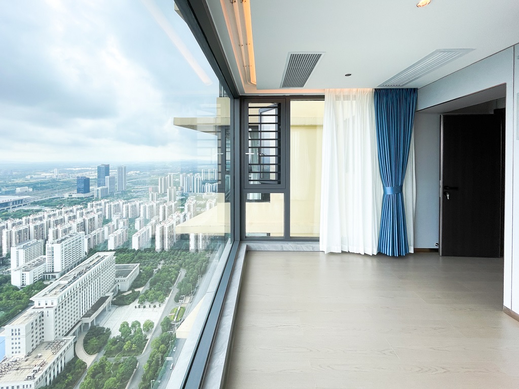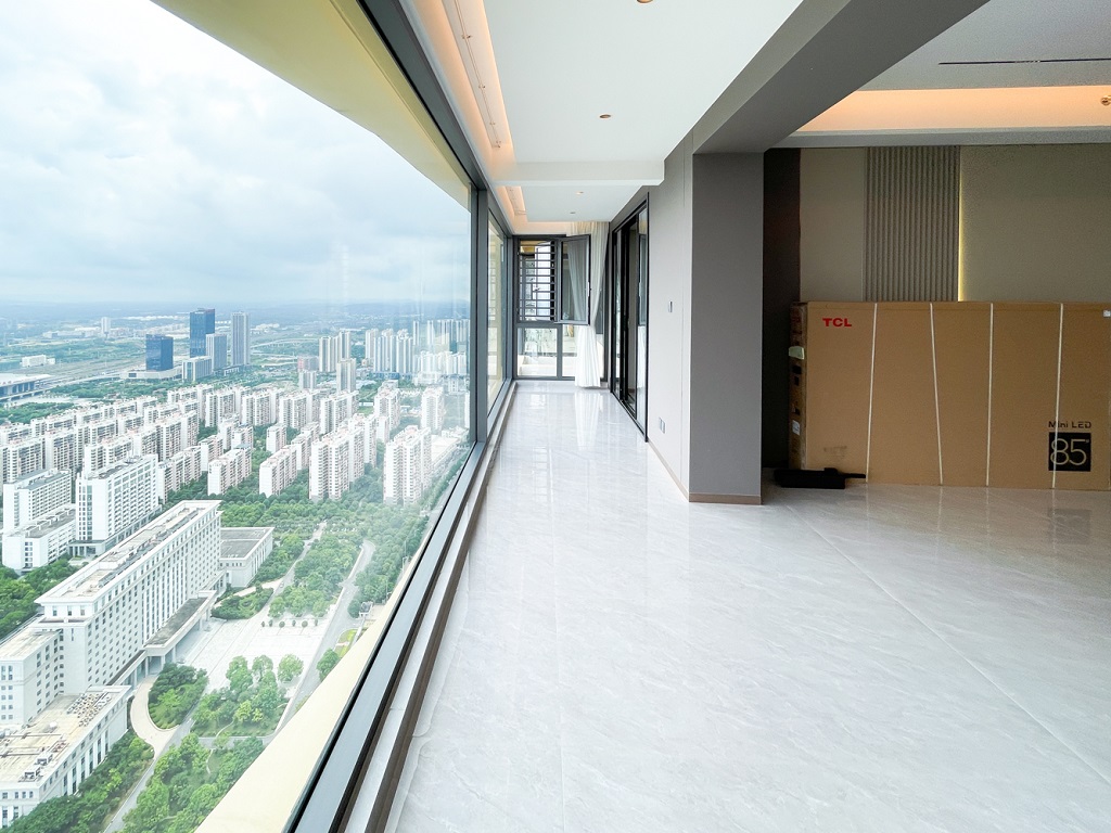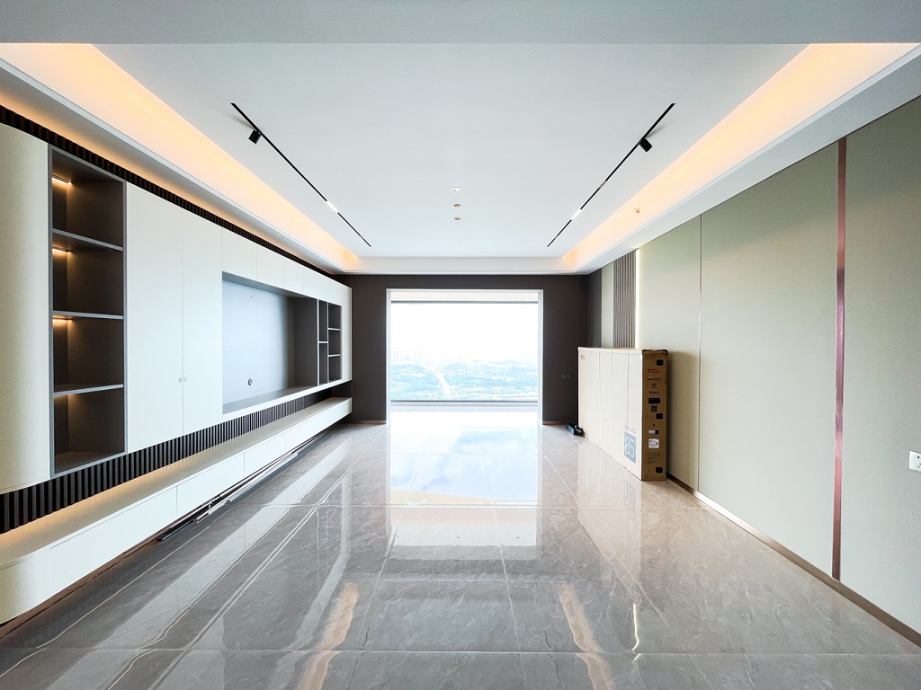 陽臺和空間色調(diào)相輔相成的大面積落地窗,干凈規(guī)整的收納儲物空間柜,找到美的共鳴。