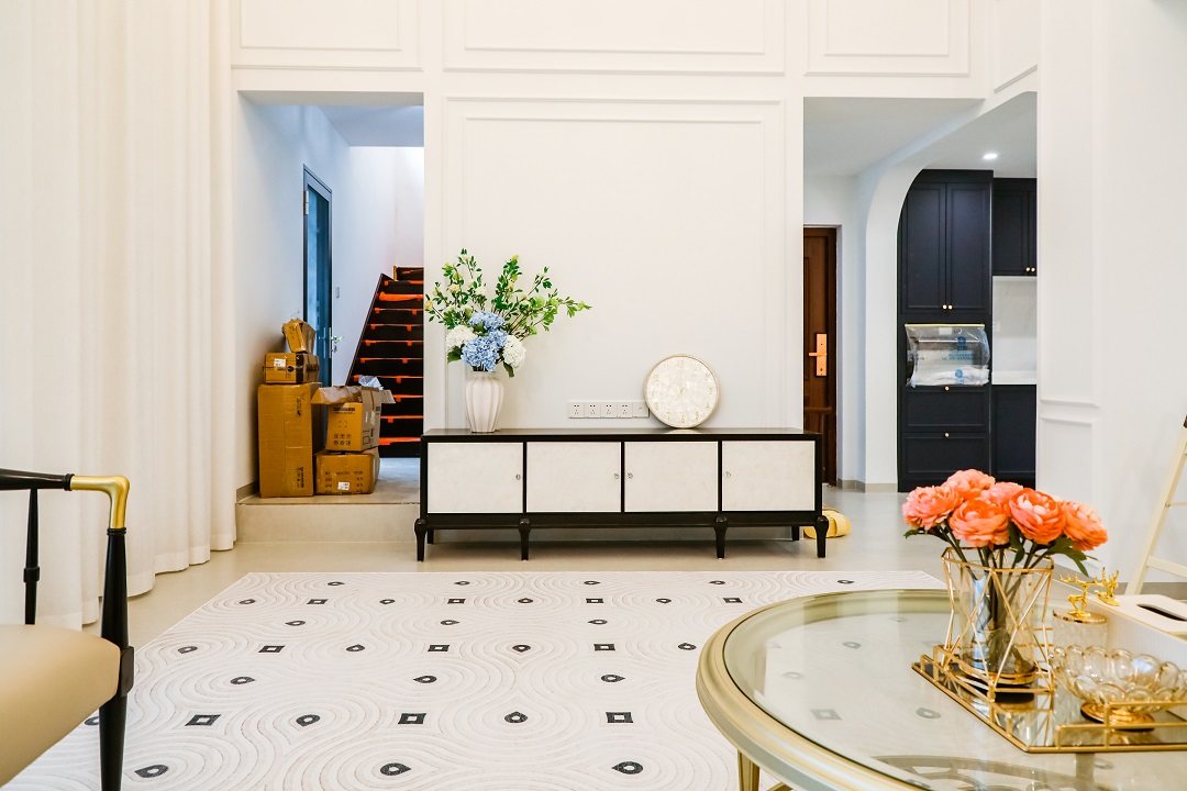 瀏覽量:555乳白色布藝沙發(fā)與黑色復(fù)古腳凳沙發(fā)的搭配,用智能窗簾隨時(shí)打開(kāi)好心情,從客廳往廚房看去,用復(fù)古法式弧形帶出了精致有趣的視角