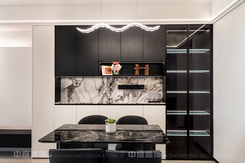 瀏覽量:207整個(gè)家以黑、白、灰為主色調(diào),簡(jiǎn)約又高級(jí)??蛷d電視墻的設(shè)計(jì)很有層次,黑白柜體搭配大理石元素,質(zhì)感拉滿;餐廳的黑色大理石餐桌盡顯格調(diào)。玄關(guān)的黑色木門和“喜樂(lè)平安”的細(xì)節(jié),又添了幾分溫馨。廚房的灰色系櫥柜實(shí)用又美觀,衛(wèi)生間把洗衣區(qū)和洗漱區(qū)結(jié)合,大理石臺(tái)面太顯質(zhì)感了!整體風(fēng)格利落大氣,每一處都透著精致,是現(xiàn)代年輕人都愛(ài)的極簡(jiǎn)高級(jí)感沒(méi)錯(cuò)了~