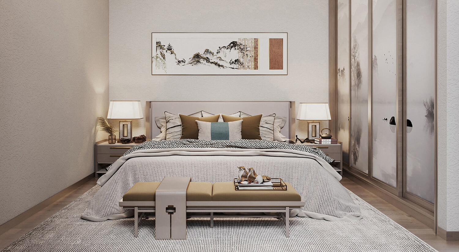 施工面積:200-220㎡| 設(shè)計(jì)風(fēng)格:新中式風(fēng)格