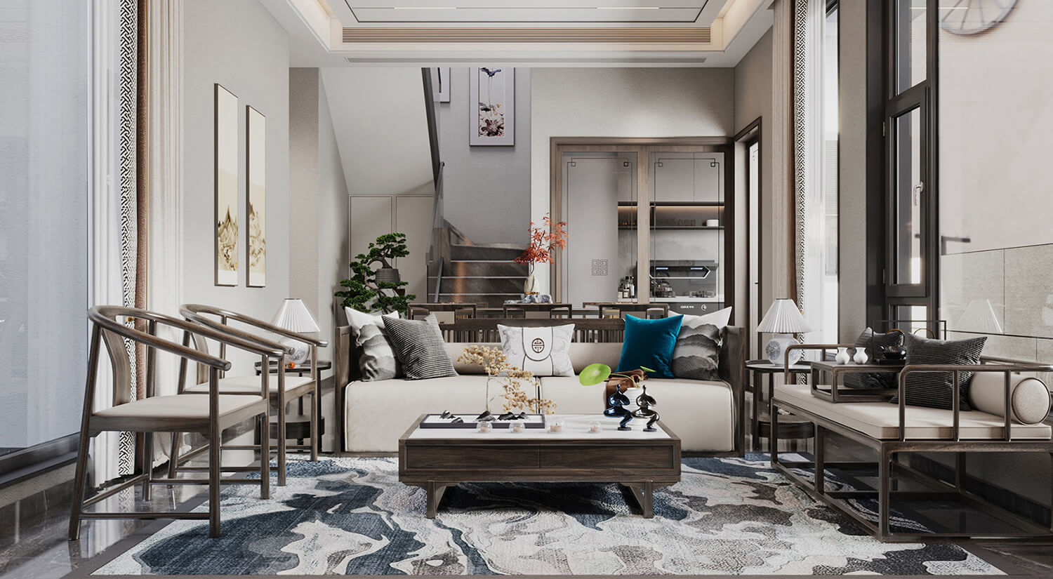本案例戶型為:6房2廳3衛(wèi),總面積216㎡。這是一個(gè)新中式風(fēng)格案例,新中式風(fēng)格的設(shè)計(jì)手法強(qiáng)調(diào)傳統(tǒng)文化與現(xiàn)代設(shè)計(jì)的融合,注重空間布局和裝飾元素的平衡,打造出具有韻味和現(xiàn)代感的空間。