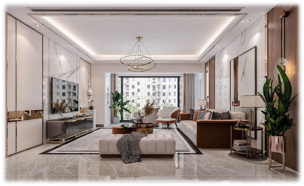 客廳用現(xiàn)代輕奢裝飾,象牙白與駝色加簡(jiǎn)單的金屬線條裝飾讓客廳看起來更顯高級(jí)感,淡雅的顏色搭配干練的線條這巧妙的搭配讓空間在簡(jiǎn)約的外表之下大大的豐富了空間的層次感,不動(dòng)聲色的流露出靈魂中的優(yōu)雅。